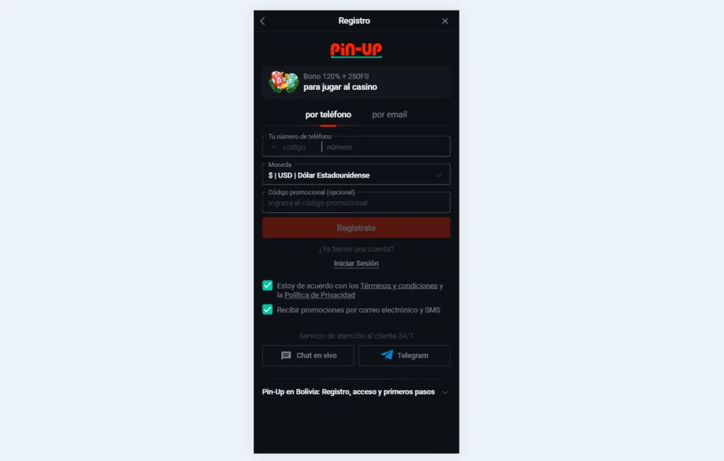Registro en Pin-Up