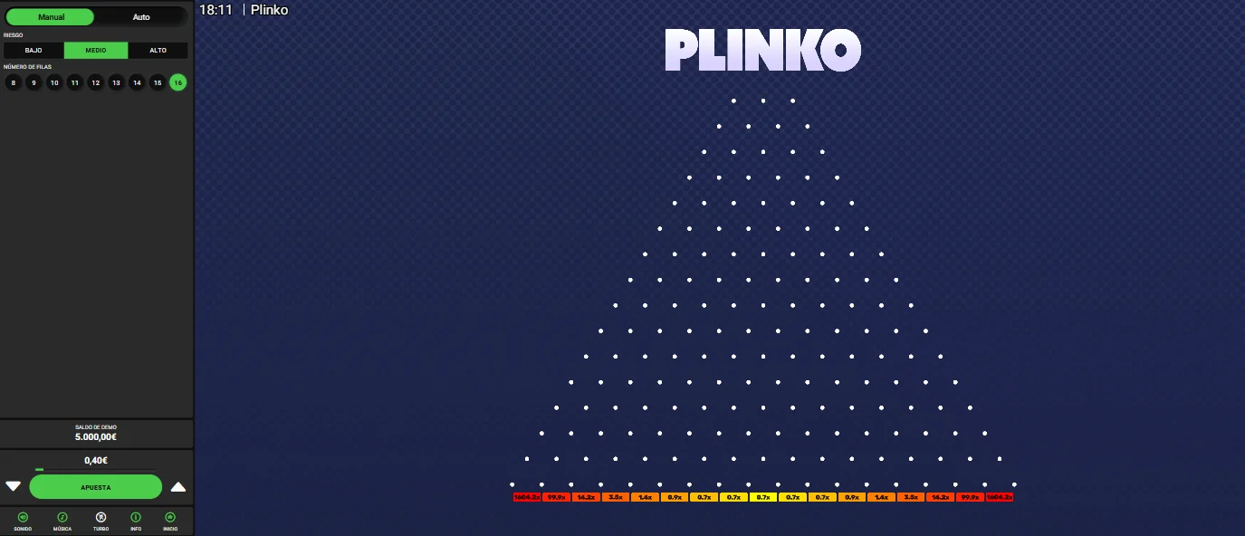 El modo demo de Plinko es ideal si recién estás empezando o solo quieres pasar el rato. Con nosotros, puedes probar sin gastar nada.